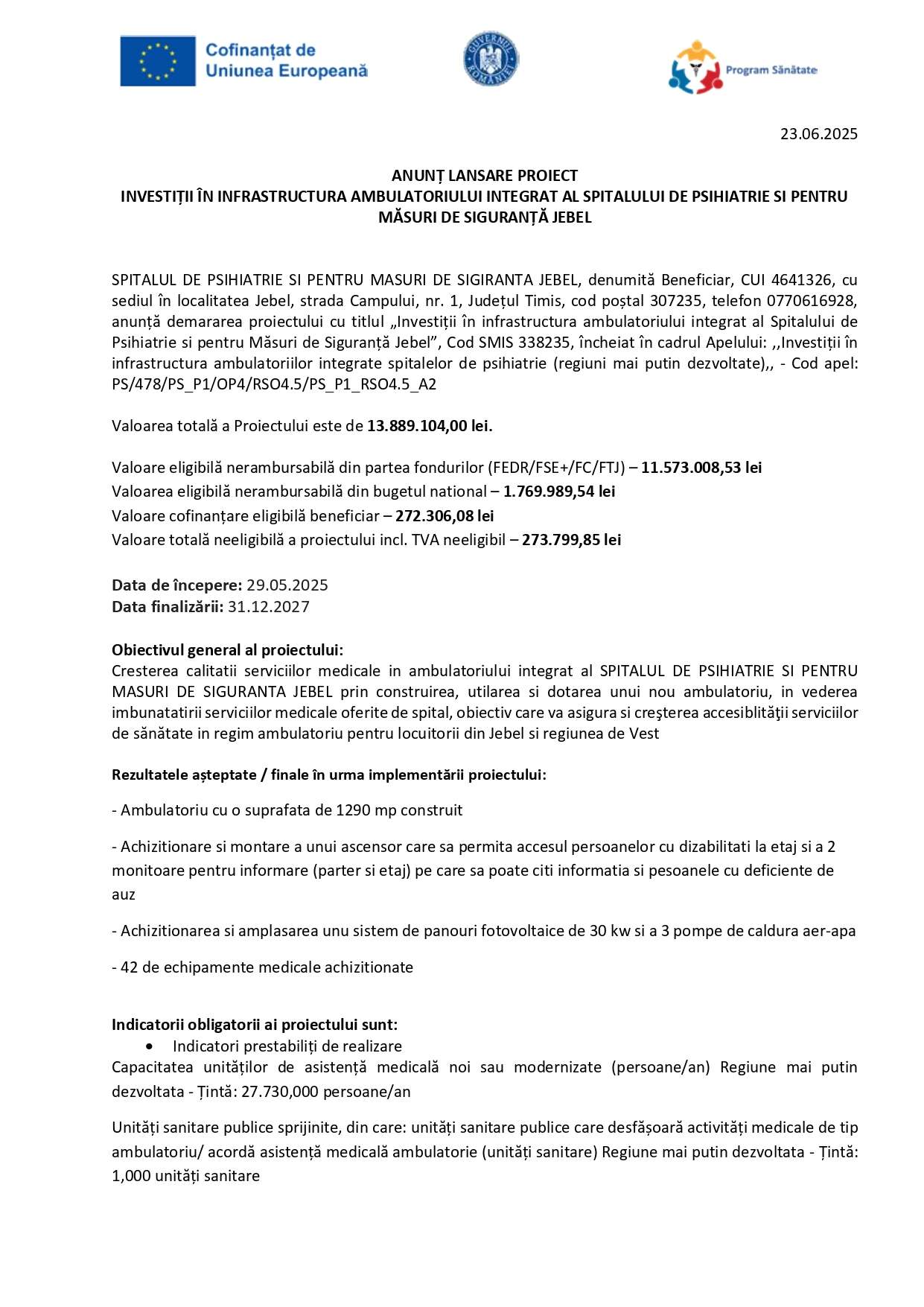 Fonduri europene Anunt lansare proiect in format PDF – 23.06.2025 Anunt demarare proiect in format PDF